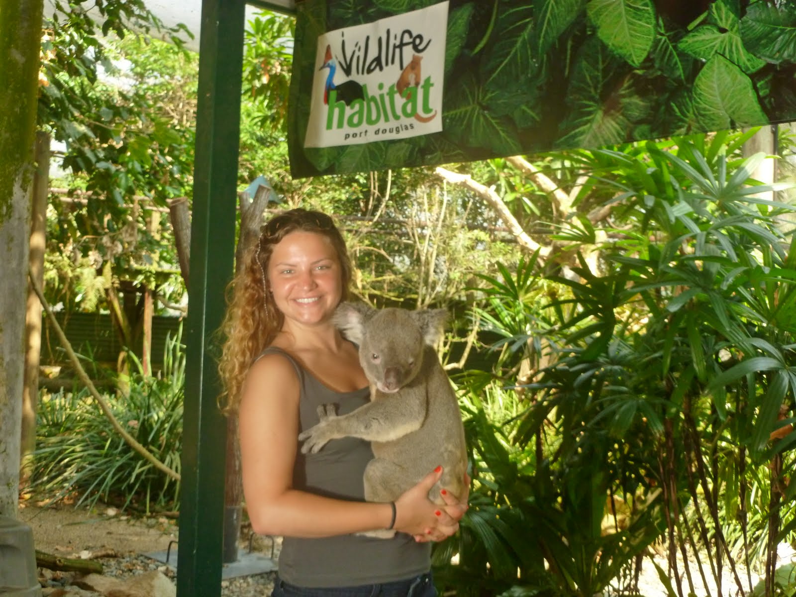 Friday was, you guessed it, another early morning as we checked out of Gilligan’s to begin another tour up the coast of Cairns to Port Douglas and then the Daintree Rainforest. We took in the sites up the coast and stopped at a few different look out points as we drove. All gorgeous scenery with mountains overlooking beaches that line the bluest water you can imagine. As we drove further, mountains and rocks turned more into rainforest that bordered the beaches, giving it a totally tropical feel. I found out on that tour that we were only sixteen degrees from the equator! It blew my mind that the sun was actually directly overhead at noon, the way you’ve always been told it’s meant to be since you were a kid. Anyway, after driving a fair bit (and catching a nap on the bus!) we arrived at the Wildlife Habitat in Port Douglas. Which was also largely a bird sanctuary. Good God were there a lot of birds! And they were left to just stroll around and fly as they pleased, meaning they could stalk and sneak up on you when you finally thought you’d found a safe area where they wouldn’t be flapping around. Ew. I (mostly) kept my composure and appreciated the fantastic colors, until I saw one of the scariest birds I’ve ever seen. The cassowary. This thing looks like a dinosaur and is apparently meaner than anything. Seriously, YouTube “cassowary attack” and you’ll find plenty. Anyway, aside from the birds, there were koalas and kangaroos, of course…and I held a koala! It’s illegal to hold one in New South Wales, the state where I live, but not in Queensland. Definitely the highlight of the day.
